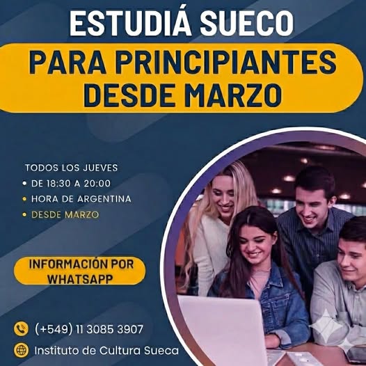 Aprendé Sueco Desde Marzo En Cursos de Sueco, Novedades. Sueco para principiantes – No se necesitan conocimientos previos del idioma Todos los jueves de 18:30 a 20:00 a partir de marzo Contactanos por WhatsApp